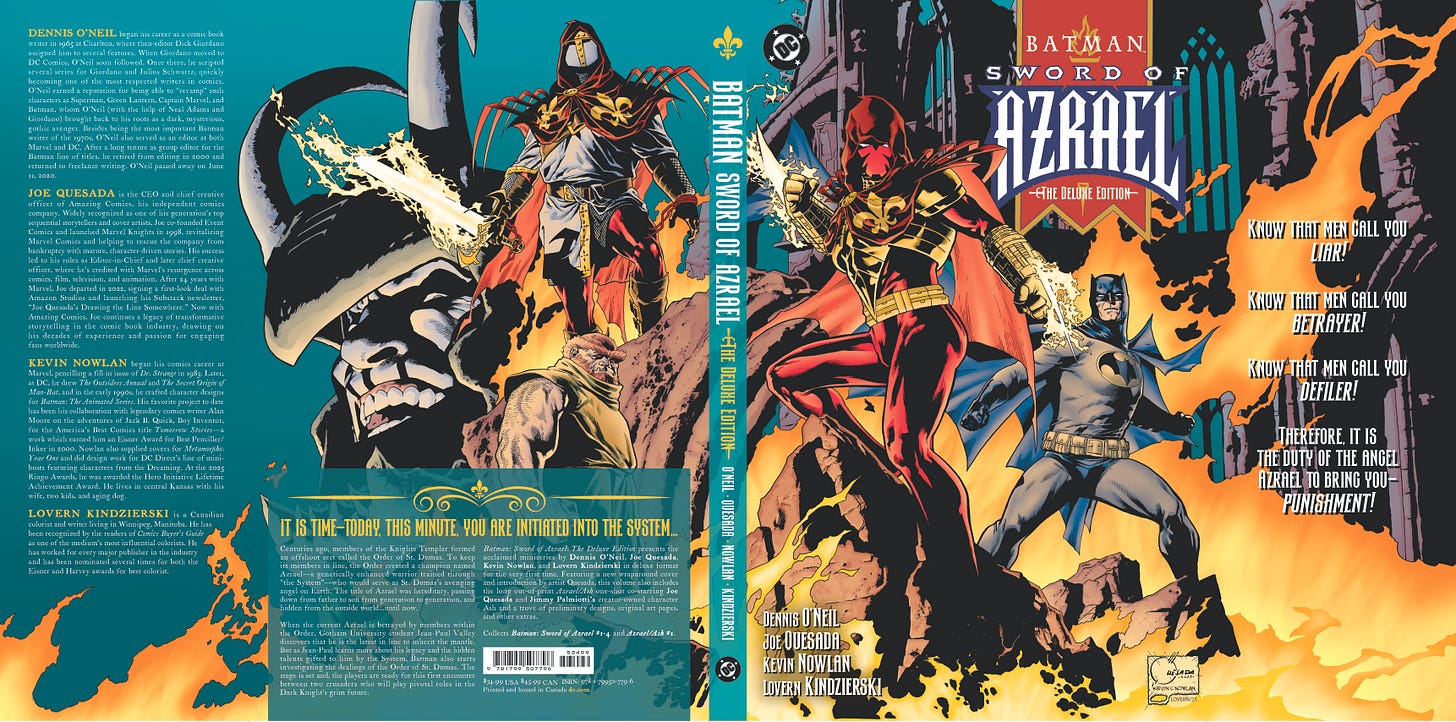 When DC editor Reza Lokman called and asked if I’d be interested in doing a new cover, I jumped at the chance. Azrael is where I really began learning my craft, under the tutelage of Denny O’Neil and the greatest editor in the history of comics, Archie Goodwin.