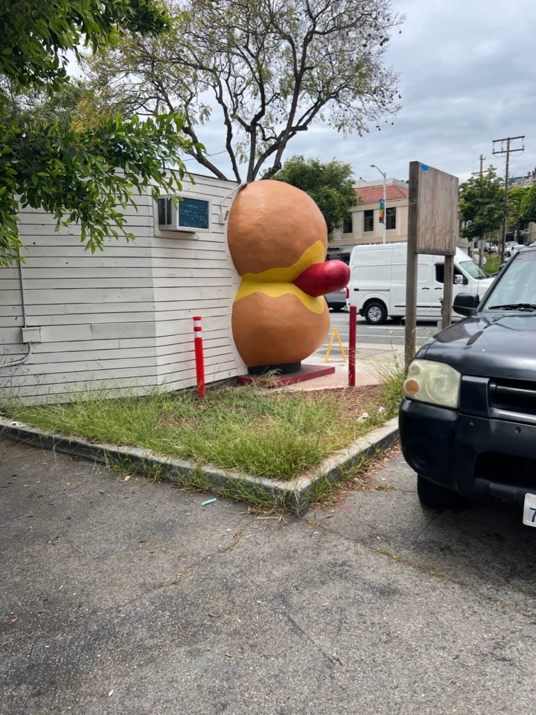 I was in Los Angeles earlier this week and in the mood for a hotdog. I had heard about Tail o’ the Pup but never experienced it. This was the first thing I saw as I walked through the parking lot.